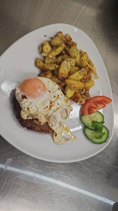 Willkommen in unserem Café, wo wir Ihnen die besten Imbisgerichte servieren! Unser Schnitzel ist zart und knusprig, perfekt gebraten und wird mit einer Beilage Ihrer Wahl serviert. Genießen Sie dazu ein frisch zubereiteten Kaffee oder ein erfrischendes Getränk, während Sie unser gemütliches Ambiente genießen.